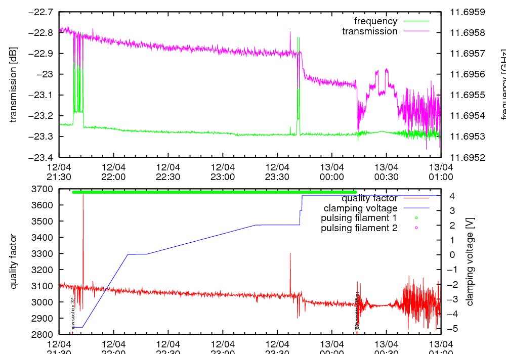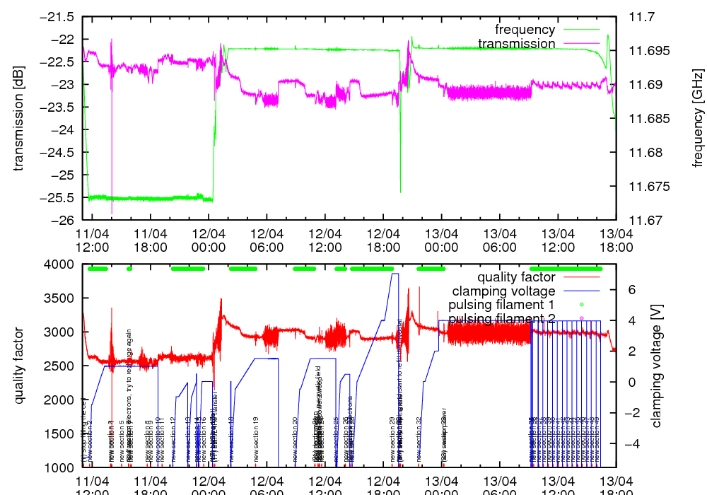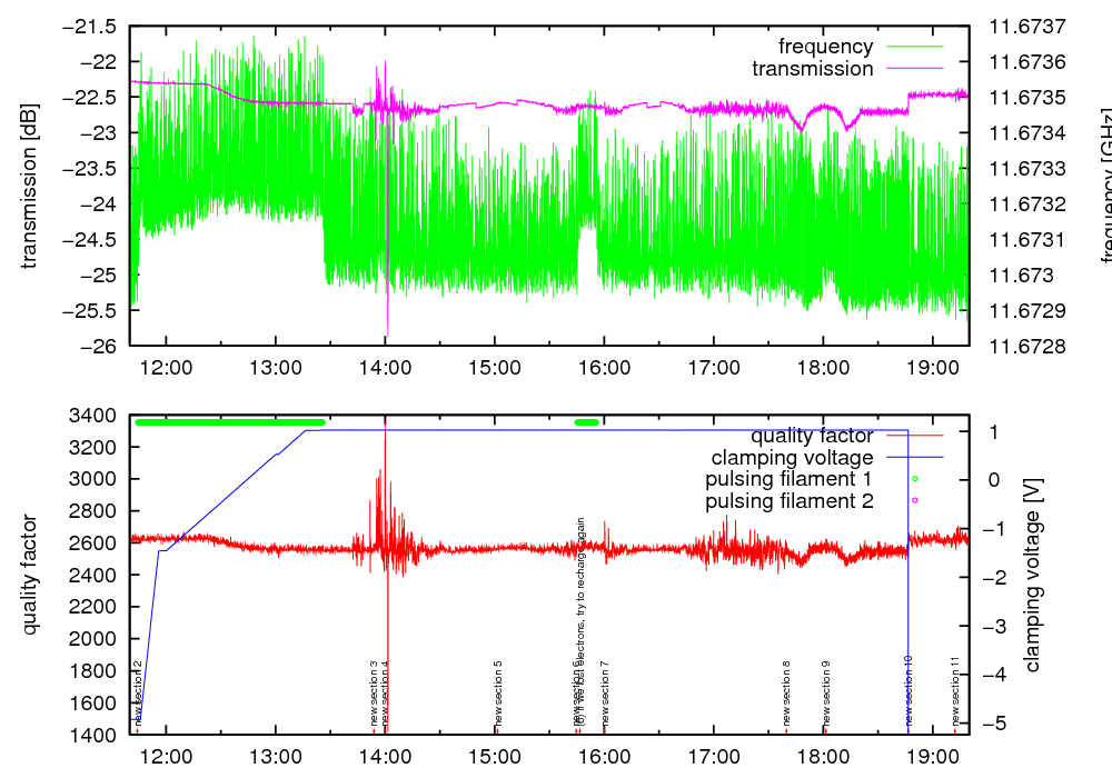 | charge with constant U and different filament power |