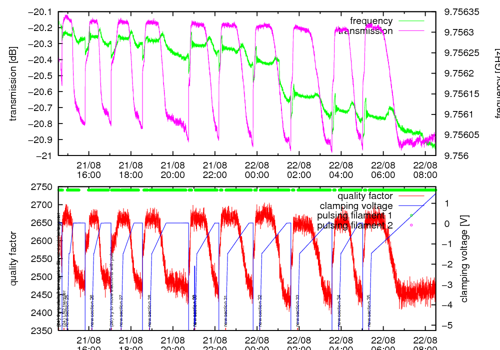 21.08.02 14:33:58 "(24) the pulses from now on do not enter the cryostat"